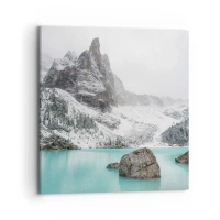 Quadro su tela - Stampe su Tela - Un paesaggio montano con un lago circondato da cime innevate - 70x100cm - Di guardia - Decorazione murale moderna per soggiorno e camera da letto ARTTOR