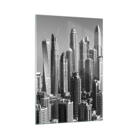 Quadro su vetro - Panorama di grattacieli moderni in toni monocromatici - 80x120cm - La città sul deserto - Decorazione murale moderna per soggiorno e camera da letto ARTTOR