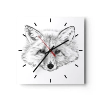 Quadro su vetro - Disegno in bianco e nero di una testa di volpe su sfondo bianco - 80x120cm - Questi occhi possono mentire? - Decorazione murale moderna per soggiorno e camera da letto ARTTOR