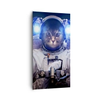 Quadro su vetro - Un gatto in tuta da astronauta con la Terra sullo sfondo e una luce intensa. - 80x120cm - Houston, avete un problema - Decorazione murale moderna per soggiorno e camera da letto ARTTOR