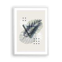 Quadro su tela - Stampe su Tela - Composizione geometrica con foglie tropicali nei toni del verde - 70x100cm - Natura e geometria: due ordini? - Decorazione murale moderna per soggiorno e camera da letto ARTTOR