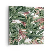 Quadro su tela - Stampe su Tela - Un motivo decorativo a foglia nei toni del verde e del bordeaux su uno sfondo chiaro - 70x100cm - Macchia smeraldo e lilla - Decorazione murale moderna per soggiorno e camera da letto ARTTOR