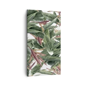 Quadro su tela - Stampe su Tela - Un motivo decorativo a foglia nei toni del verde e del bordeaux su uno sfondo chiaro - 80x120cm - Macchia smeraldo e lilla - Decorazione murale moderna per soggiorno e camera da letto ARTTOR