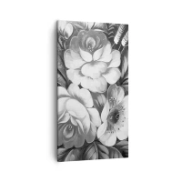 Quadro su tela - Stampe su Tela - Fiori bianchi e neri in una composizione classica ed elegante - 80x120cm - Belli anche in grigio - Decorazione murale moderna per soggiorno e camera da letto ARTTOR