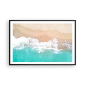 Poster in cornice nera - Una vista a volo d'uccello di una spiaggia con acqua turchese e onde dolci - 100x70cm - Un tocco carezzevole - Decorazione murale moderna per soggiorno e camera da letto ARTTOR