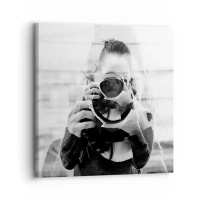 Quadro su tela - Stampe su Tela - Ritratto in bianco e nero con doppia esposizione di un fotografo - 50x70cm - Il creatore e il materiale - Decorazione murale moderna per soggiorno e camera da letto ARTTOR
