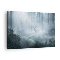 Quadro su tela - Stampe su Tela - Un cervo in una fitta foresta avvolto nella nebbia mattutina - 50x70cm - Passeggiata mattutina sulle sue terre - Decorazione murale moderna per soggiorno e camera da letto ARTTOR