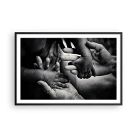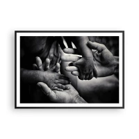 Poster in cornice nera - Mani bianche e nere di diverse generazioni - 100x70cm - Umanità - Decorazione murale moderna per soggiorno e camera da letto ARTTOR