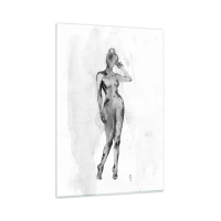 Quadro su vetro - Schizzo della silhouette di una donna in tonalità di grigio - 80x120cm - Studio di ideale di bellezza - Decorazione murale moderna per soggiorno e camera da letto ARTTOR