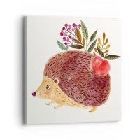 Quadro su tela - Stampe su Tela - Un simpatico riccio con una mela e delle piante in stile illustrativo - 70x50cm - E mi vuoi già bene - Decorazione murale moderna per soggiorno e camera da letto ARTTOR