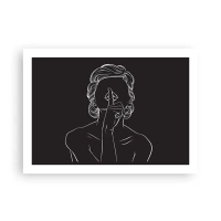Poster - Silhouette minimalista di una donna su sfondo nero - 100x70cm - Il bello emerge nel silenzio - Decorazione murale moderna per soggiorno e camera da letto ARTTOR