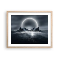 Poster in cornice nera - Paesaggio misterioso con un anello di luce sulle montagne - 100x70cm - La fine del racconto - Decorazione murale moderna per soggiorno e camera da letto ARTTOR