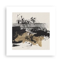 Poster - Un dipinto astratto in nero e oro con linee e strutture dinamiche. - 100x70cm - Composizione con passione - Decorazione murale moderna per soggiorno e camera da letto ARTTOR