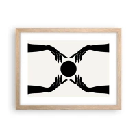Poster in cornice nera - Mani nere in una composizione simmetrica con una palla - 100x70cm - Segno misterioso - Decorazione murale moderna per soggiorno e camera da letto ARTTOR