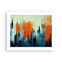 Poster - Paesaggio urbano astratto nei toni dell'arancione e del blu - 100x70cm - Paesaggio moderno - Decorazione murale moderna per soggiorno e camera da letto ARTTOR