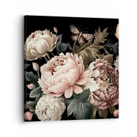 Poster - Eleganti peonie e una farfalla su sfondo nero - 50x70cm - In stile barocco - Decorazione murale moderna per soggiorno e camera da letto ARTTOR