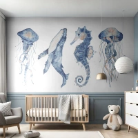 Fotomurali Premium Canvas - Meraviglie del mare - Animali marini, Cavalluccio marino, Medusa - 250x175 cm