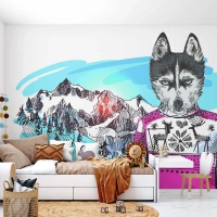 Fotomurali Standard Eco - Lupo con lana di pecora - Astrazione, Lupo, Per bambini - 350x256 cm
